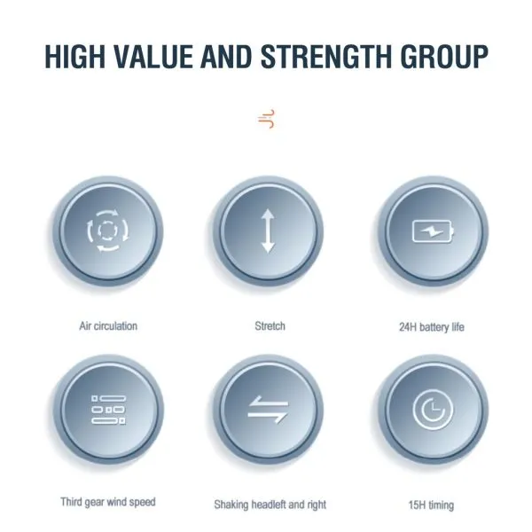Equipped with an 8000mAh rechargeable battery and a Type-C Charge Interface, this fan ensures extended usage ranging from 4 to 20 hours, making it suitable for both indoor and outdoor activities. The included Type-C charging cable facilitates convenient recharging, distinguishing it from other battery-operated fans in the market.